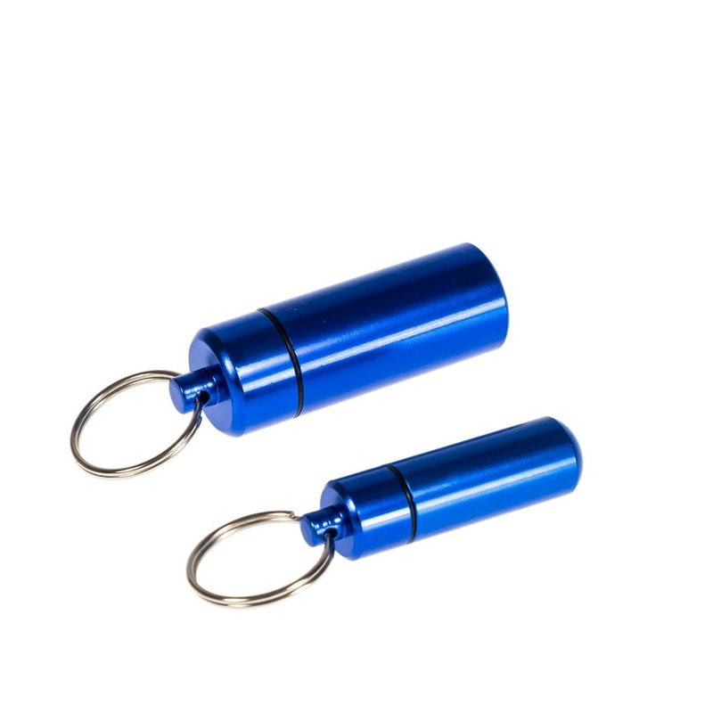 Mit dieser praktischen Pillendose aus blauem Aluminium haben Sie Ihre wichtigen Medikamente immer griffbereit. Der integrierte Schlüsselring ermöglicht eine einfache Befestigung an einem Schlüsselbund, einer Kette oder am Reißverschluss Ihrer Jacke. Die Dose lässt sich dank des Schraubverschlusses sicher öffnen und schließen und ist wasserdicht, um Ihre Medikamente vor Feuchtigkeit zu schützen.